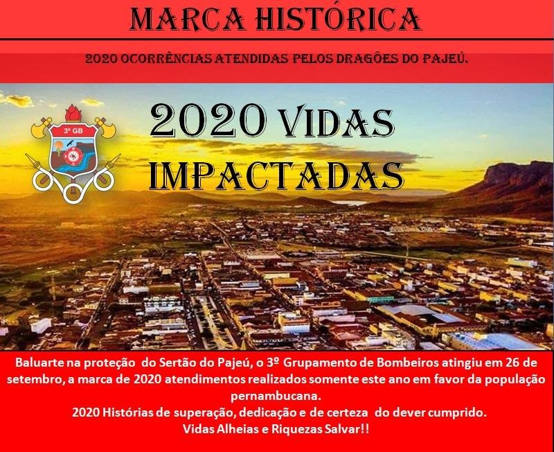 Esses números mostram que foram mais de 2 mil vidas impactadas em um ano. Além disso, conhecidos por “Dragões do Pajeú”, o grupamento informou: “2020 Histórias de superação, dedicação e de certeza do dever cumprido. Vidas alheias e riquezas salvar!!!”.