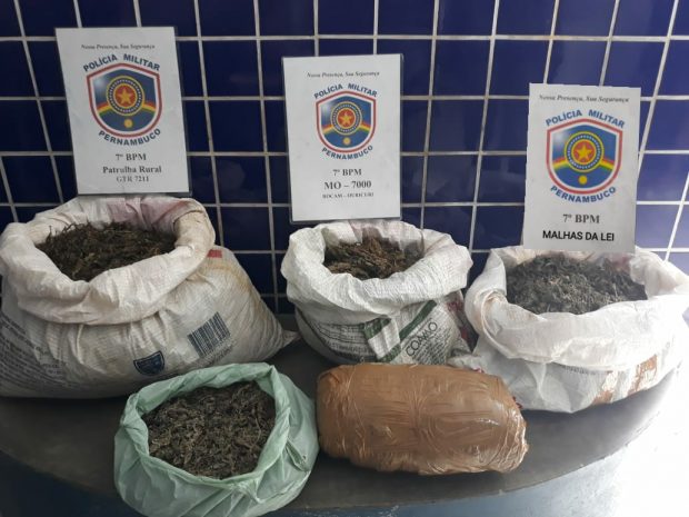 Além disso, durante buscas no perímetro em torno de sua residencia foram localizados aproximadamente 8,150 Kg de maconha pronta para o consumo, enterrada no chão. O imputado, ao ser perguntado sobre a origem da droga, afirmou ser o dono do entorpecente.