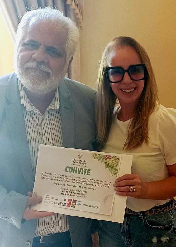 A empreendedora e Gestora de Eventos, Andréa Martins, foi recebida nesta segunda-feira, (03) no Palácio do Governo de Pernambuco, pelo secretário Executivo da Casa Civil, Rubens Júnior. Na oportunidade, a curadora do III Festival de Queijos e Vinhos e Delícias de Triunfo realizou a entrega oficial do Convite para o evento.