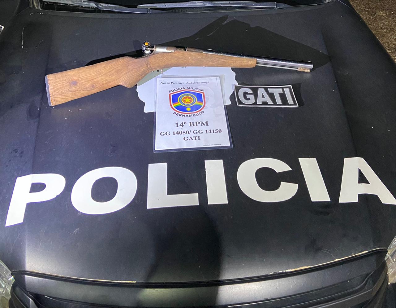 De acordo com as informações, os Policiais Militares do 14º BPM, durante Operação Madrugada Segura, foram acionados pela Central de Operações para verificarem uma denúncia, que veio através do Disque Denúncia, que um homem chegou com um carro e com uma arma de fogo, começou ameaçar todos na rua.