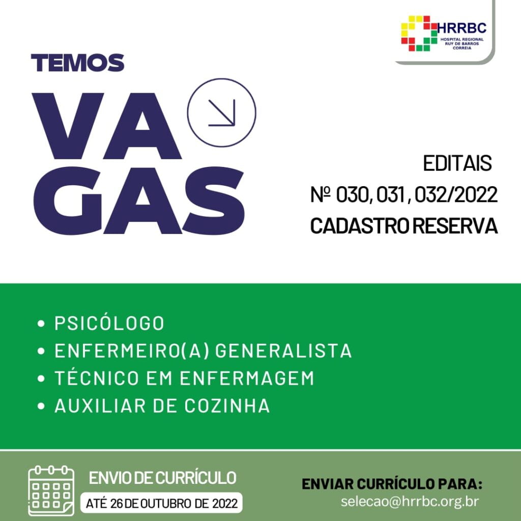 O Hospital Regional Ruy de Barros Correia (HRRBC) localizado em Arcoverde, no Sertão Pernambucano, abriu três processos seletivos visando cadastro reserva para diversas áreas.
