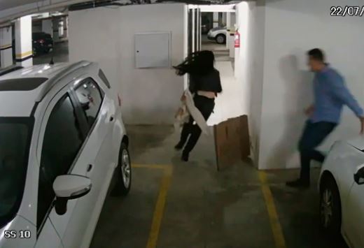 Já no estacionamento, as imagens mostram que Tatiane tentou fugir em direção ao elevador, mas não conseguiu e as agressões continuaram. Em determinado momento, o homem parece aplicar um golpe conhecido como “mata-leão”, asfixiando Tatiane.