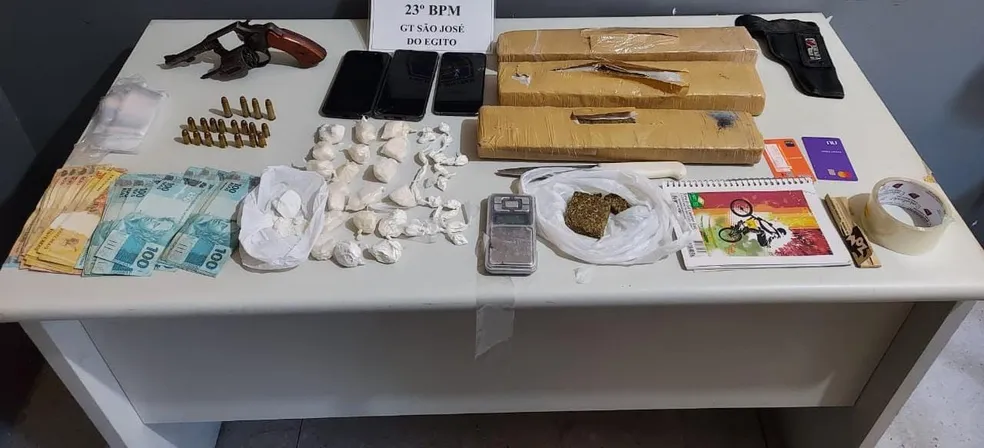 Nesta terça-feira (09), um casal foi detido por tráfico de drogas em São José do Egito, Sertão de Pernambuco. O homem e uma adolescente estavam com 235 g de cocaína, 2,8 kg de maconha, um revólver, uma faca, uma balança de precisão, e R$ 3 mil em espécie.