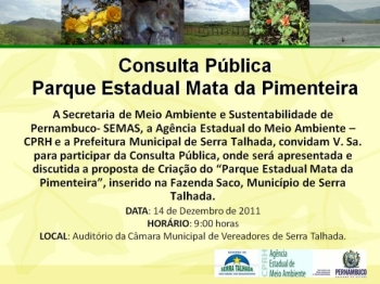 será apresentado e discutido o “Parque Estadual Mata da Pimenteira”,