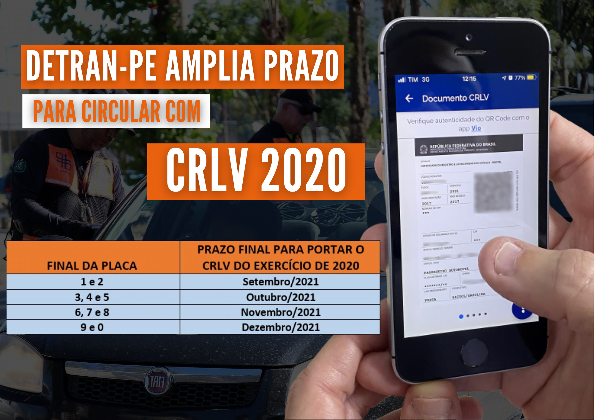 O Departamento Estadual de Trânsito de Pernambuco (Detran-PE) prorrogou o prazo de validade do calendário anual de licenciamento de veículos usados/CRLV (Certificado de Registro e Licenciamento de Veículos) do exercício de 2020. As informações são do Diário de Pernambuco.