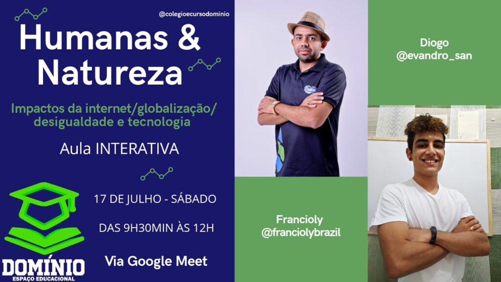 Então caia para dentro o quanto antes! Baixe o App ‘Google Meet’ e fica ligado nas redes sociais do Cursinho Domínio, onde será disponibilizado o link para as aulas!