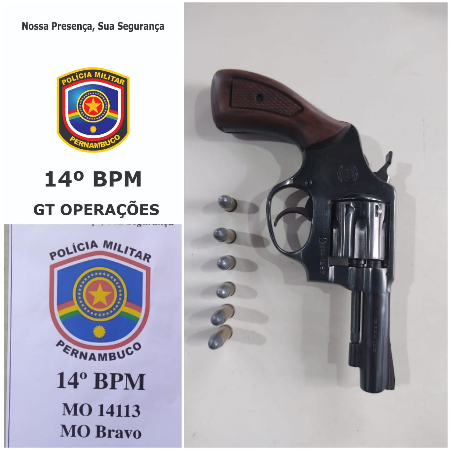 Na bolsa da imputada, foi encontrado um revólver calibre 32, oxidado, com 06 (seis) munições intactas. No momento da apreensão, o imputado 01 assumiu propriedade da referida arma, informando que a imputada 02 estava apenas guardando.