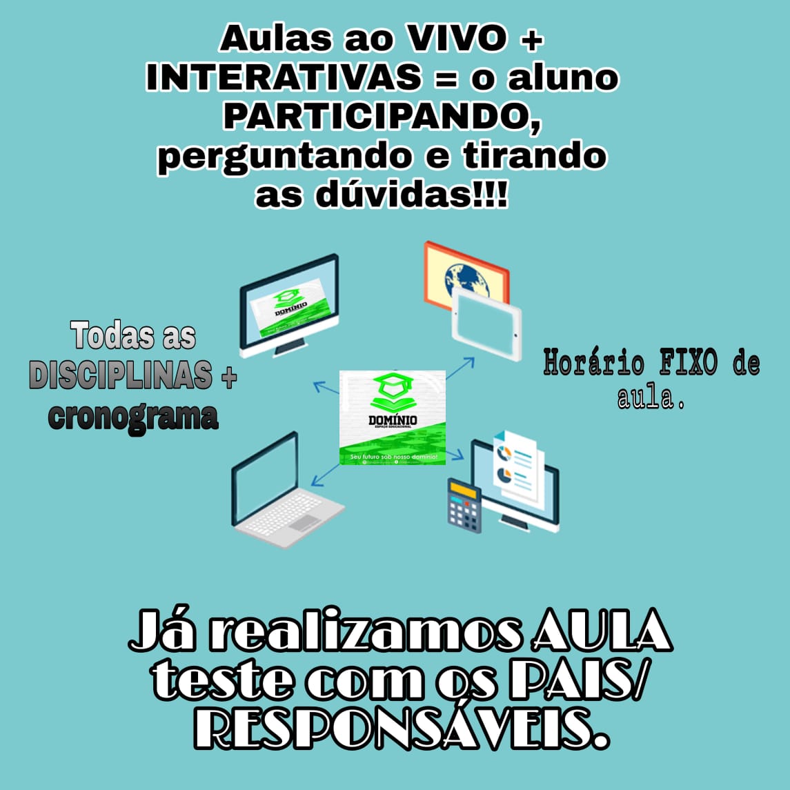 O aluno Davi, relatou um pouco sobre as aulas e sua satisfação com o novo modo de ensino da Escola Domínio: