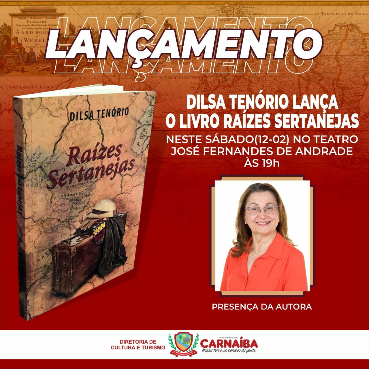 A escritora Dilsa Tenório, está de volta à sua terra natal para lançar o livro Raízes Sertanejas. No próximo dia 12/02, a autora estará em Carnaíba onde fará o lançamento do livro para seus conterrâneos, no teatro José Fernandes de Andrade, às 19h.