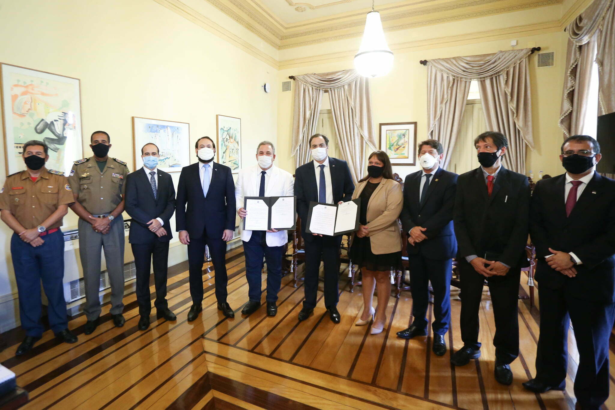 Também participaram da reunião de assinatura do projeto o presidente da Assembleia Legislativa, deputado Eriberto Medeiros; os secretários estaduais Marília Lins (Administração), Carlos José (chefe da Casa Militar) e Eduardo Figueiredo (Justiça e Direitos Humanos); o comandante geral da Polícia Militar, Roberto Santana; o comandante geral do Corpo de Bombeiros, Rogério Coutinho; o chefe da Polícia Civil, Nehemias Falcão; e o chefe da Polícia Científica, Fernando Benevides.