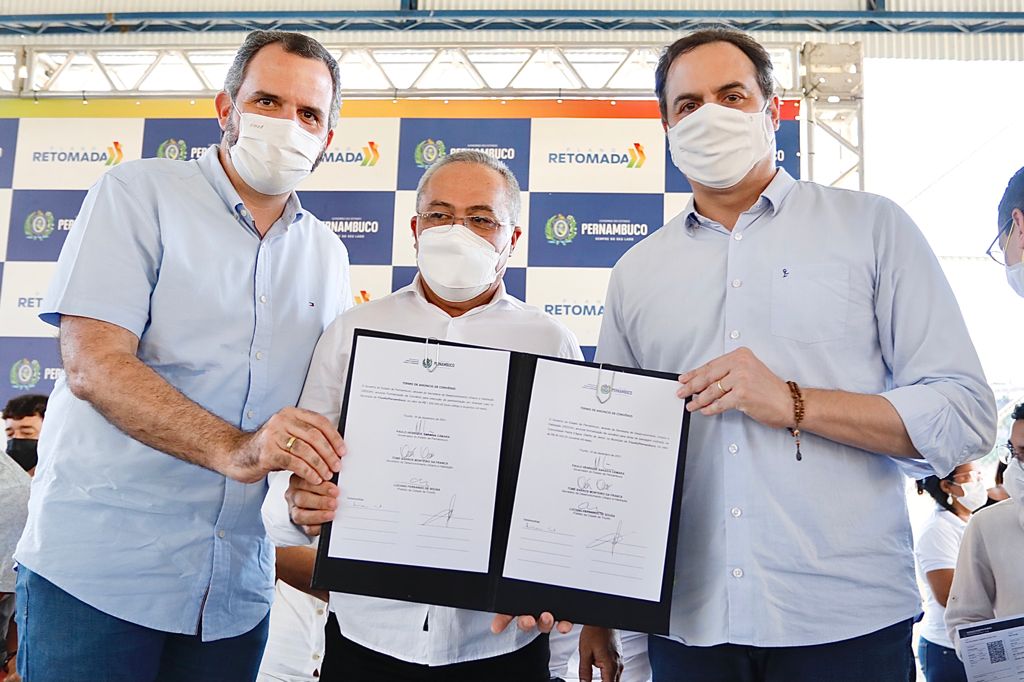 Foi assinado ainda convênio para pavimentação de diversas ruas do município e o termo de licitação para o projeto e construção da passagem molhada na comunidade da Pedra Dágua, distrito de Jericó. Os anúncios contam com uma aporte de R$ 1,3 milhão. Paulo Câmara entregou ainda CRLVs a proprietários de motos devidamente quitadas com base no decreto estadual de anistia das dívidas. Na área do turismo e lazer, foi autorizada a licitação para construção do Pátio Pernambuco, com a implantação de banheiros, área de de convivência, quiosques, playground, bicicletário, espaço para palco montável e amplos espaços de circulação. A ação está orçada em mais de R$ 316 mil.