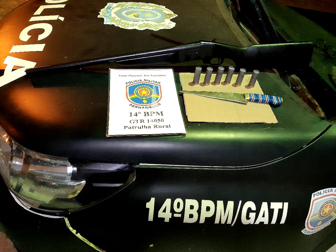 Além disso, ela afirmou que também havia agredido suas filhas. O acusado, foi localizado na garagem, que ao ser realizada a abordagem ele entregou 01 (uma) faca peixeira que estava em sua cintura, em seguida a vítima 01 chamou o policiamento e entregou 01 (uma) espingarda CBC/Cal 12 e 06 (seis) munições CBC Cal 12.