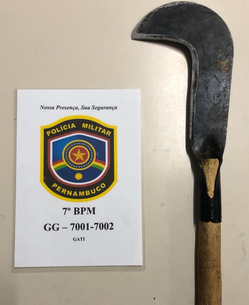 O policiamento fez deslocamento até o local citado, localizou o imputado que confessou a ameaça, apreendendo a foice utilizada na ameaça. A ocorrência foi apresentada a DP local. Logo após foi encaminhada para a DP de Plantão em Araripina. Com informações do Blog Francisco Brito.