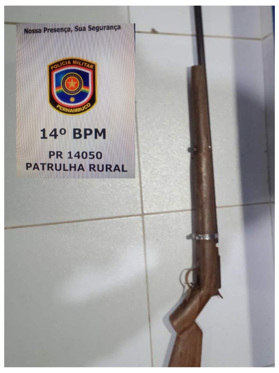 De acordo com informações, Policiais Militares do 14°BPM durante patrulhamento, visualizaram o imputado em uma motocicleta Bros em atitude suspeita. Ao realizarem abordagem, encontraram dentro do bornal um cano de uma espingarda artesanal.