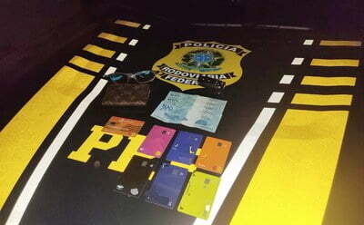 O motorista portava diversos cartões de crédito em nome de outras pessoas e R$400,00 em espécie. Em consulta, foi verificado que ele possuía passagem na polícia por tráfico de drogas, porte ilegal de arma, furto qualificado e uso de documento falso.