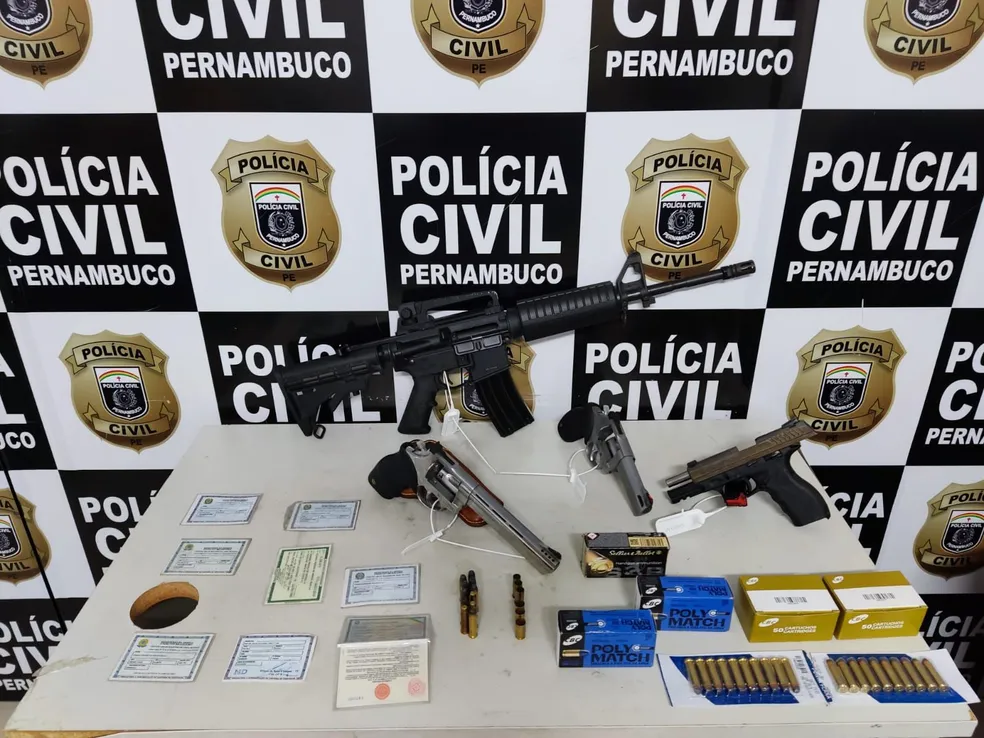 De acordo com a Polícia Civil, ele estava em posse de um fuzil calibre .556, um revólver calibre .357; um revólver calibre .38; uma pistola calibre .380; 140 munições calibre 9mm; 28 munições calibre .357 e três munições calibre .38.