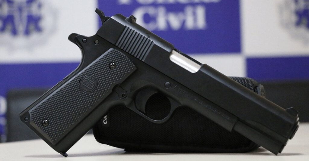 Ao chegar no endereço mencionado, encontraram o imputado com um simulacro de uma pistola cal .40. A vítima reclamava de fortes dores de cabeça em decorrência da agressão sofrida.