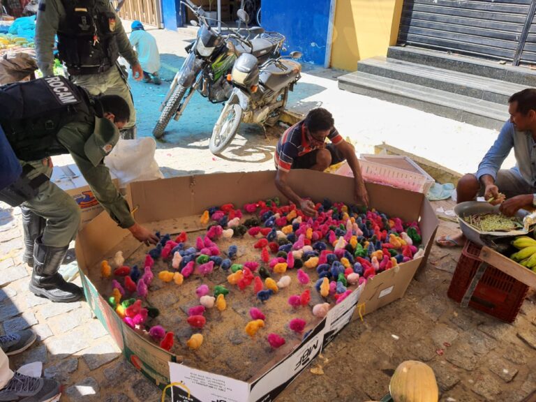 Na manhã deste sábado (26), um homem foi preso em flagrante comercializando pintinhos coloridos em feira pública no centro comercial de Serra Talhada, no Sertão de Pernambuco.