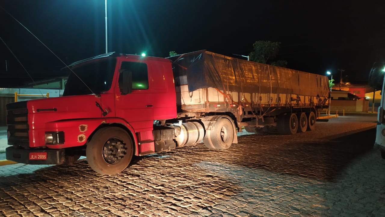 Por volta das 14h30, os Policiais Militares do 14º BPM durante patrulhamento visualizaram o veículo Scania, de cor vermelha, ao abordar os ocupantes foram encontradas 03 (três) armas brancas com eles.