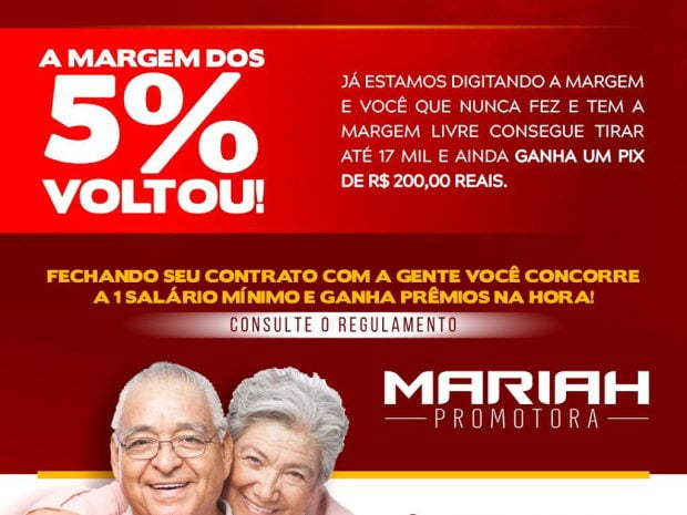 Aposentados e Pensionistas do INSS, o 5% voltou e já estamos digitando. Para você que nunca fez e recebe décimo terceiro estamos liberando até R$ 17 mil e ainda ganha um pix no valor de R$ 200. Além de mais uma novidade, estamos fazendo empréstimo pra quem recebe BPC (loas).