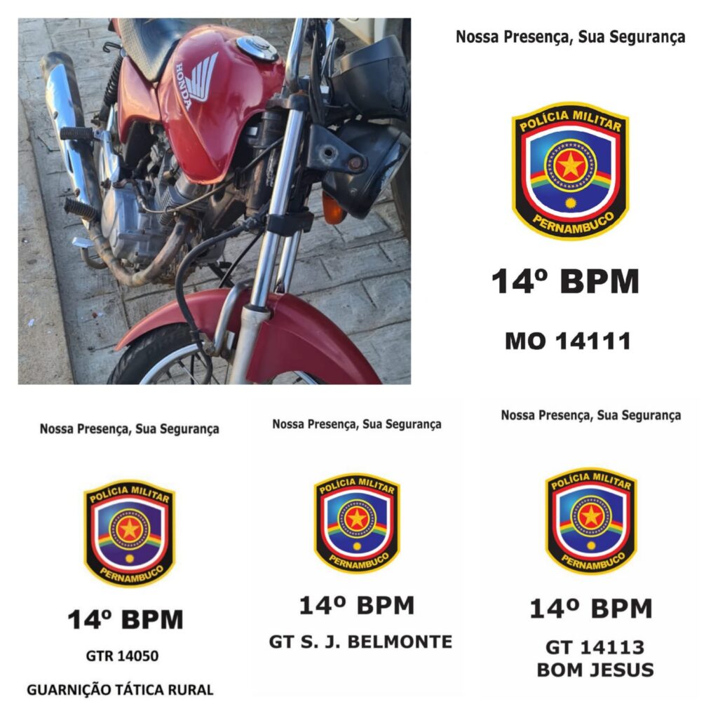 De acordo com informações, Policiais Militares do 14°BPM foram solicitados pela vítima que informou ter tido a sua motocicleta Honda/CG 150 furtada na manhã do domingo (11). Ela afirmou ainda que o suspeito estava seguindo para Serra Talhada em uma van.