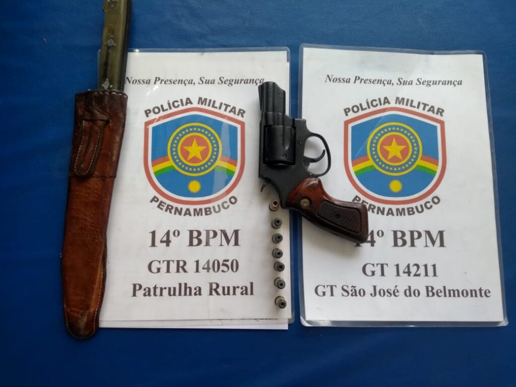 Na manhã desta quinta-feira (10), um homem foi preso com arma de fogo, arma branca, munições e com celular adulterado em São José do Belmonte. O fato ocorreu na PE-430, na Cacimba Nova.