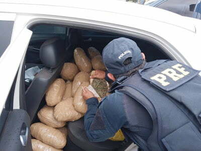 Neste sábado (23), um homem de 34 anos foi preso com 58 kg de maconha na BR-423 em Garanhuns, Agreste de Pernambuco. Segundo a Polícia Rodoviária Federal (PRF), a droga era transportada no interior e no porta-malas de um carro de passeio.