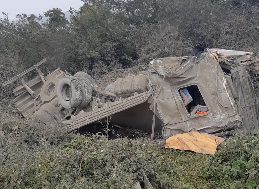 O caminhão capotou e saiu da rodovia. A vítima ficou presa nas ferragens, não resistiu e morreu no local. O corpo foi retirado pelos bombeiros.