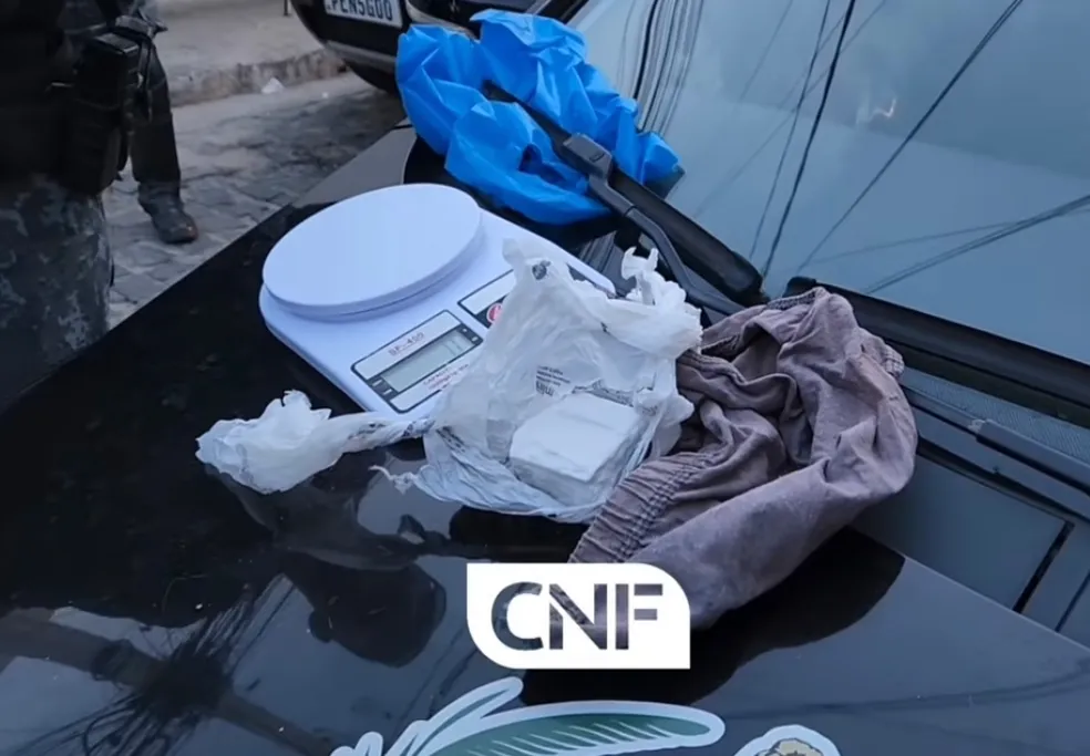 Com a mulher, a polícia encontrou um pacote com 104 gramas de cocaína e uma balança de precisão. Segundo a Polícia Militar, essa suspeita já havia sido presa por tráfico de drogas.