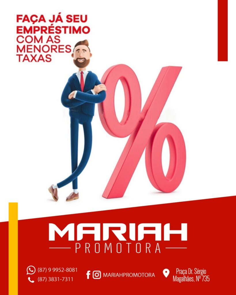 Para os clientes que procurarem Mariah para o seu primeiro empréstimo e têm margem livre, a promotora mais reconhecida da cidade lhe oferece até R$ 15 mil e ainda escolhe e leva para casa na hora o seu brinde, um ventilador, uma cesta básica ou um celular e uma cesta básica. Caso você não tenha margem, Mariah compra a dívida de outro banco e ainda reduz a taxa de juros.