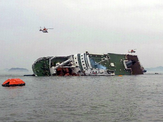 Mais de 300 pessoas estão desaparecidas após o naufrágio de um barco que afundou na costa sudeste da Coreia do Sul, deixando pelo menos quatro mortos. Cerca de cem barcos e 20 helicópteros participam do socorro, e até agora 164 pessoas foram resgatadas. A embarcação adernou e afundou após raspar o casco no fundo do mar. O barco havia partido do porto de Incheon. Esse pode ser o maior desastre marítimo na Coreia nos últimos 20 anos.