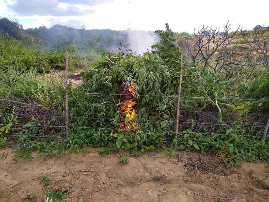 A operação conjunta Muçambê III realizou nesta terça-feira (09) a erradicação e incineração de 15 mil pés de maconha, distribuídos em cinco mil covas. Os cultivos foram encontrados na região do Sítio São Mateus em Lagoa Grande e no sítio ‘Baixa da Cacimba’, área limite com o município de Dormentes, ambos no Sertão de Pernambuco.