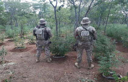 Além disso, na primeira investida realizada pelo efetivo foram localizados dois plantios, sendo um com 4.264 pés e outro com 9.360, totalizando 13.624 pés de maconha. Já na segunda investida, as equipes localizaram três plantações, sendo uma com 3.000 pés, outra com 27.600 e a última com 6.825, totalizando 37.425 pés de maconha.