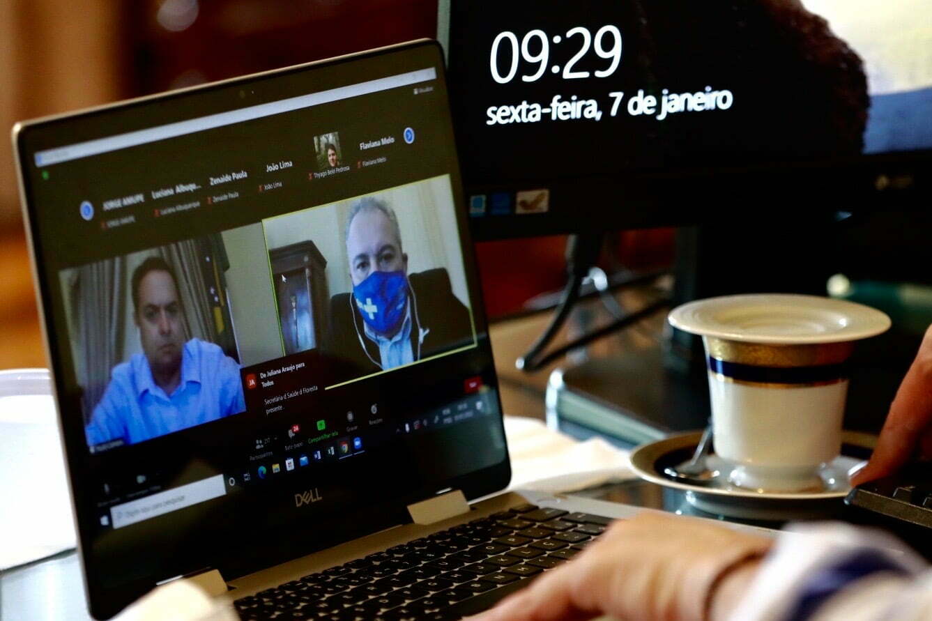 O governador Paulo Câmara se reuniu, na manhã desta sexta-feira (07), por videoconferência, com prefeitos de todas as regiões do estado para compartilhar o atual momento da pandemia da Covid-19 e a aceleração dos casos de Influenza.
