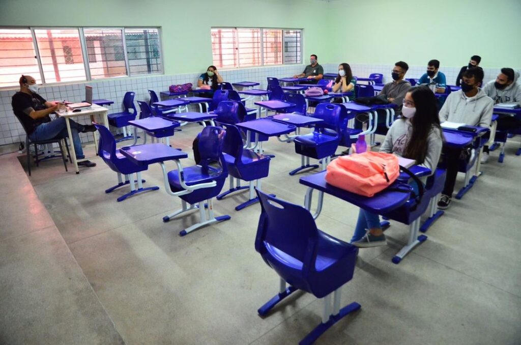 “Essa é uma semana de dois dias. O tempo de aula está sendo menor e o desgaste maior, por isso vamos ter um descanso. A gente tem uma quantidade pequena principalmente no 3º ano. Agora tem como viajar e ter aula normal, sem perder nada por conta da internet. Estamos alternando alunos ímpares e pares, têm dias na semana para vir na aula presencial. Mas, ainda assim, a aula é transmitida para os alunos que estão em casa. Próxima semana, esperamos mais alunos, porque não tem feriado e o 1º ano já pode voltar. Isso representa 15% da educação básica já autorizado a voltar para aula presencial”, afirmou Arnaldo.