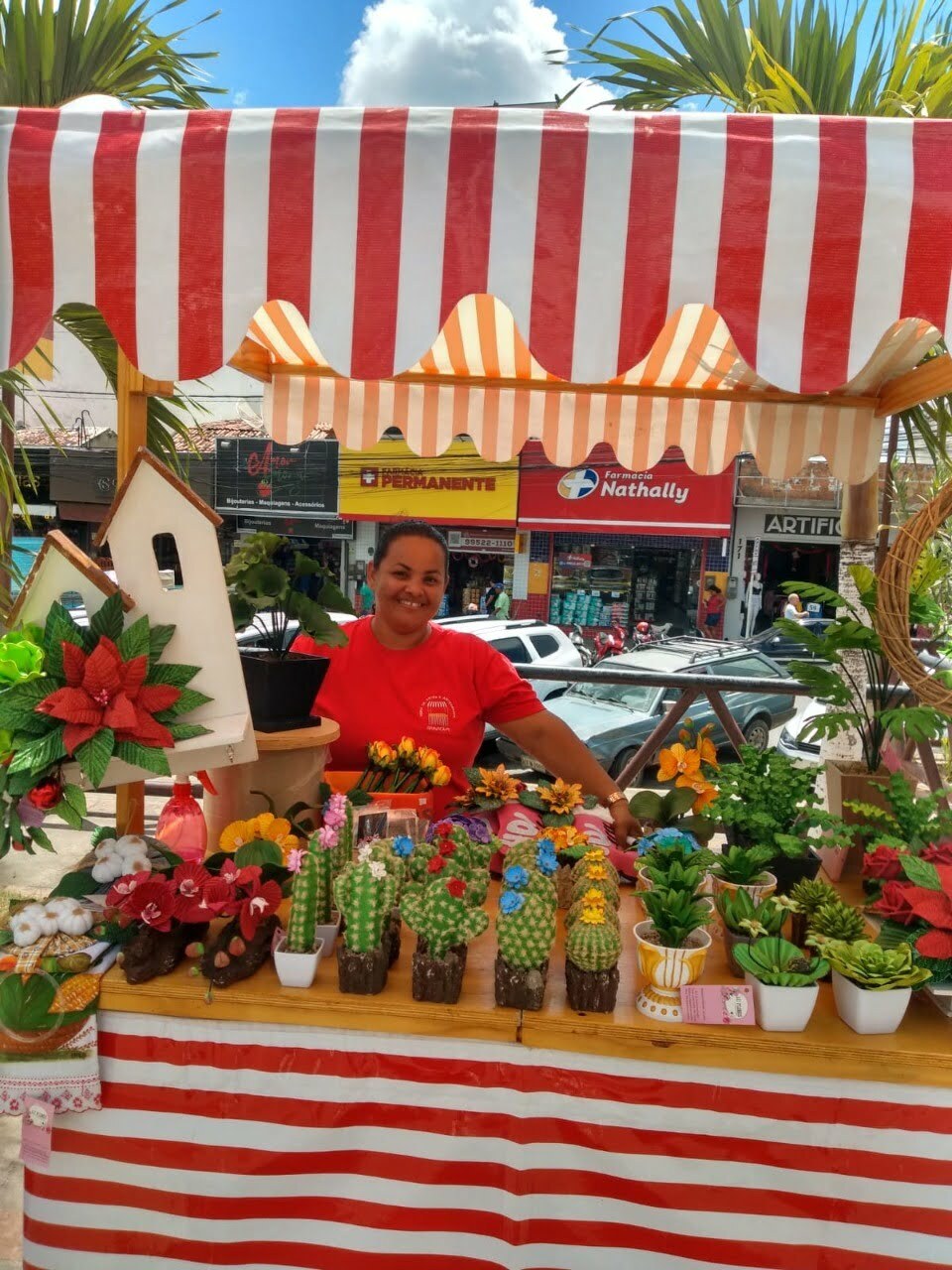 “Comecei fazendo bordados e hoje meu carro-chefe são os trabalhos manuais com emborrachados, transformando o EVA em flores, cactos, bonecas e outros itens para decoração e ornamentação”, conta Cleidinha, como é mais conhecida pela clientela. Ela vende os produtos pela internet e, após o período mais crítico da pandemia, passou a atuar também com uma loja na Praça Dez, no centro de Gravatá, por meio de uma associação com outras mulheres artesãs. “A linha de crédito da AGE traz benefícios, como a taxa de juros menor. O recurso venho utilizando para comprar material, variar nas cores do EVA, comprar vasos para colocar os cactos, arames, fita floral”, enumera a artesã.