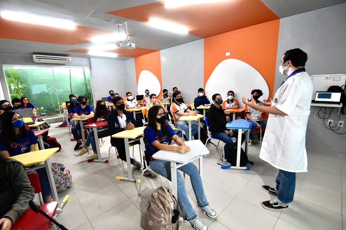 De acordo com o novo decreto estadual, a distância mínima permitida dentro das salas de aula foi reduzida de 1,5 m para 1 m e, nos espaços de convivência, de 2 m para 1,5 m, o que possibilitou um aumento na presença de alunos.