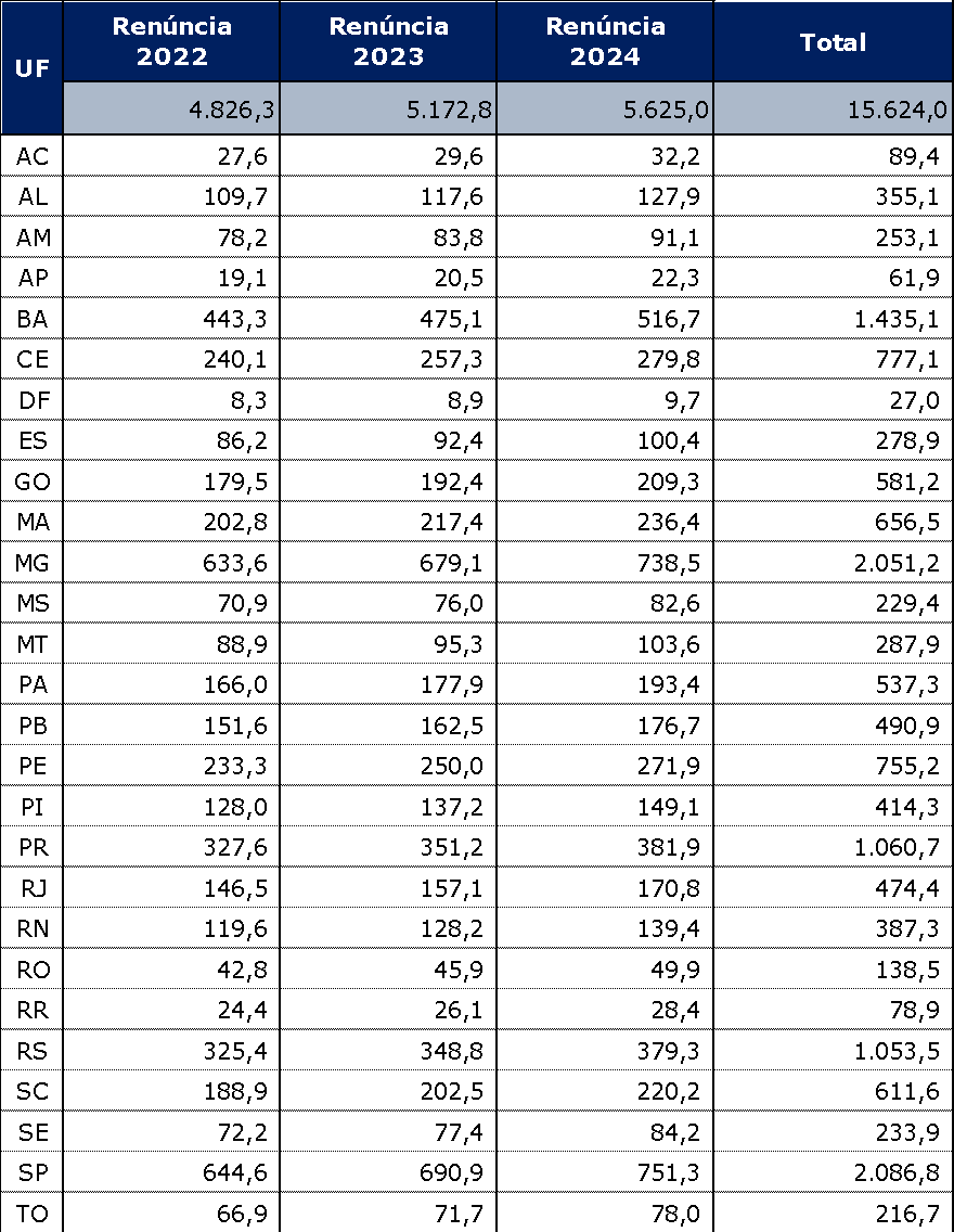 Na tabela a seguir, é possível ver as perdas dos Municípios por Estado: