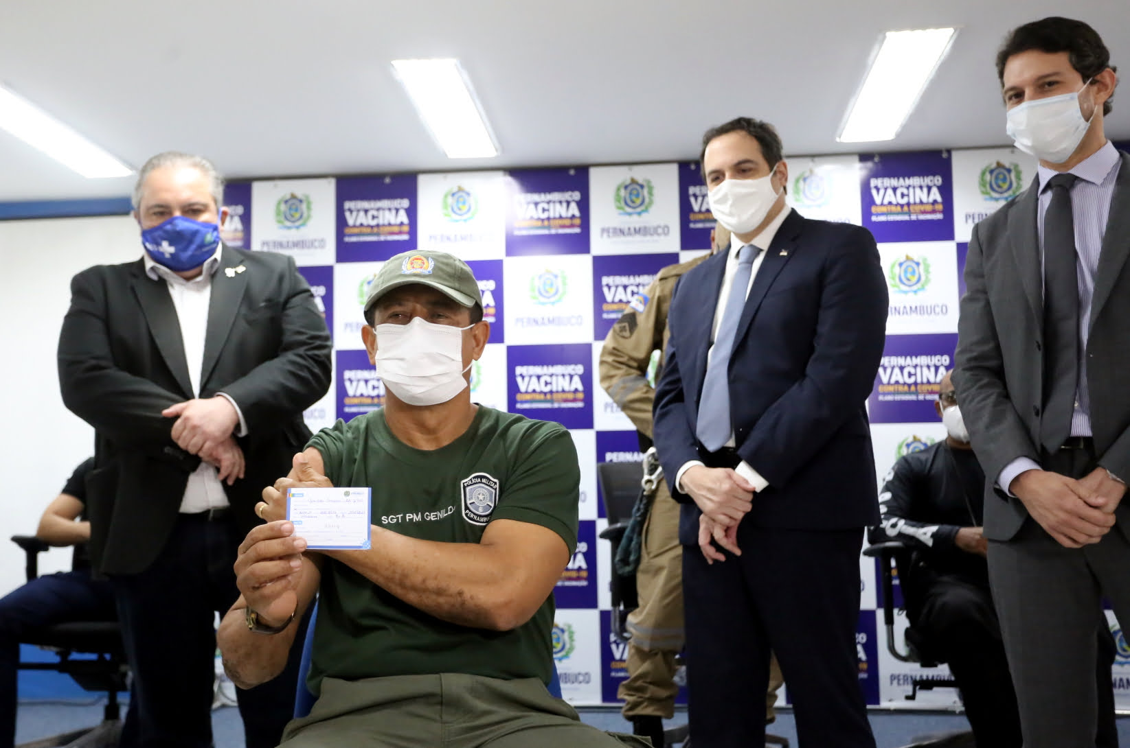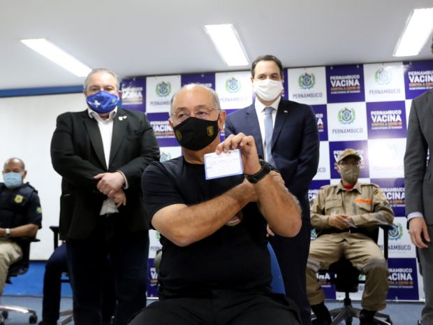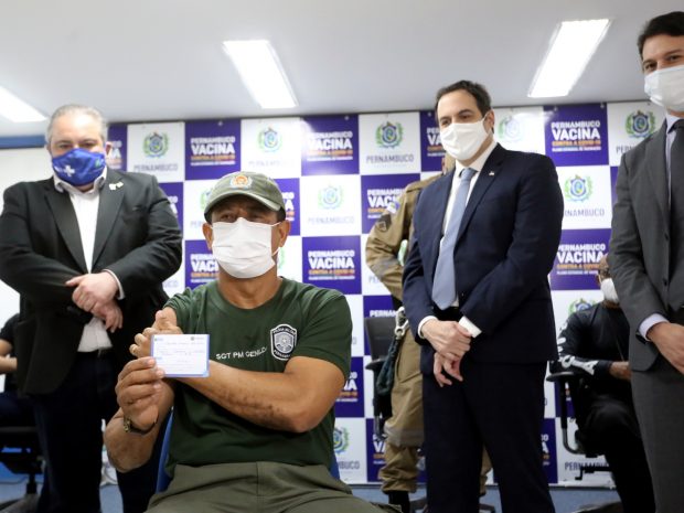 Prestigiando a solenidade, o governador Paulo Câmara lembrou que os governadores do Brasil haviam solicitado a inclusão dos profissionais de segurança pública e também de professores no Plano Nacional de Imunização, e afirmou que o momento marca o início de uma etapa muito importante. Vamos continuar buscando alternativas e cobrando que as vacinas cheguem com mais celeridade. Nossa solicitação foi atendida parcialmente e continuamos na luta pela imunização dos trabalhadores da educação. A gente já mostrou ter condições de fazer com que o imunizante chegue em todos os municípios. A partir de agora, todos os novos lotes que chegarem a Pernambuco terão uma parte destinada aos profissionais de segurança. Isso oferece uma tranquilidade maior para eles, que estão na linha de frente, frisou.