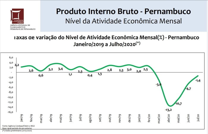 Correlacionado à indústria, o diretor de Estudos e Pesquisas Socioeconômicas da Agência, Rodolfo Guimarães, relembrou que a economia do estado, que tinha passado por mudanças com a implantação do polo automotivo da Fiat Chrysler Automobiles (FCA) e com o refino de Petróleo (no complexo de Suape) sofreu com as quedas das duas atividades. “No segundo trimestre deste ano, a indústria de transformação sofreu queda de 14,7%, acima da nacional, de 12,7%, depois de ter se mantido ainda positivo no primeiro tri. Nossa dinâmica industrial vinha acima da do Brasil desde a recuperação da crise de 2016”, explicou.