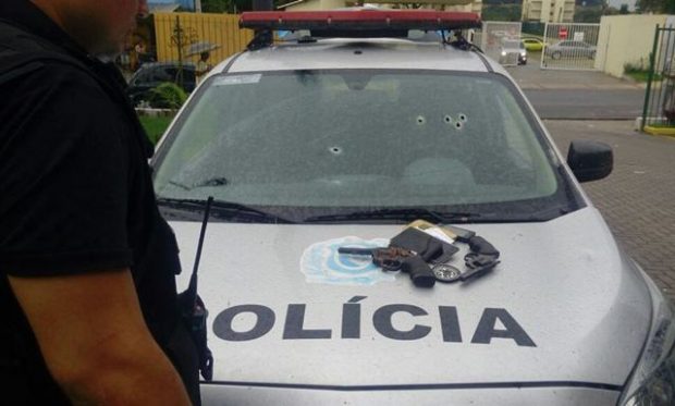 Durante a ação uma viatura da PM colidiu com um caminhão que estava estacionado. Foram apreendidos dois revólveres, um de calibre .32 e o outro de calibre .38.