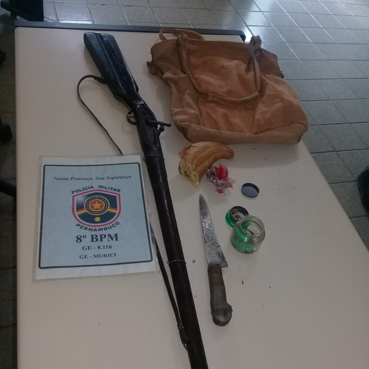 O policiamento verificou no local indicado e encontrou uma espingarda soca soca retrocarga, 33 espoletas, 01 faca tipo peixeira, 138 gramas de chumbo e 133 gramas de pólvora. Diante do exposto, todo o material apreendido foi entregue a DPC local, onde foi aberto procedimento de inquérito para apurar os fatos. Com informações de Mikael Sampaio.