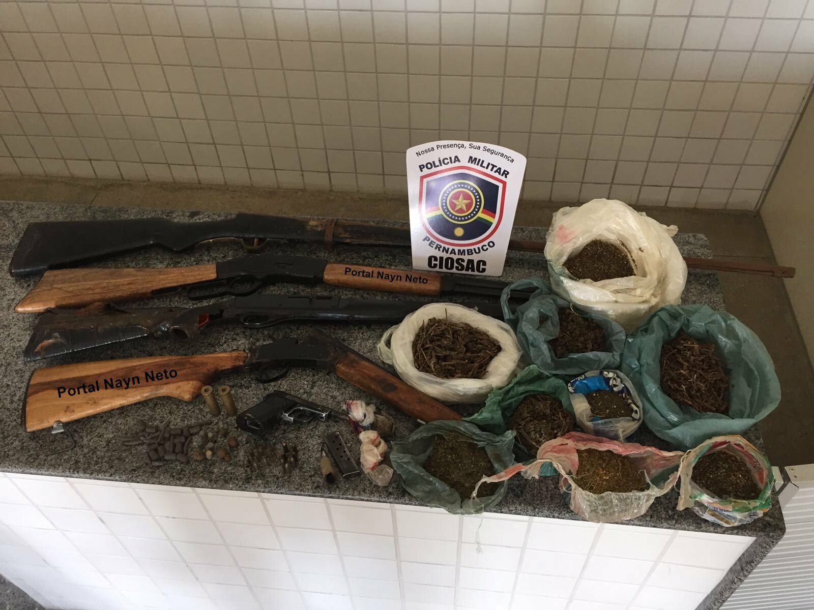 No último domingo (21), policiais militares foram verificar uma denúncia de roubo de cabras e acabaram apreendendo várias armas, sementes e maconha pronta para consumo, e também quatro pessoas foram presas, na fazenda Pedra da Chica, zona rual de Itacuruba e em Belém do São Francisco.