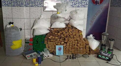 Foram encontrados aproximadamente 312 Kg de maconha prensada, 15 Kg de cocaína e 142 Kg de pasta base da cocaína, além de muitos derivados para produção da droga, como também uma pistola calibre 380 com três carregadores.