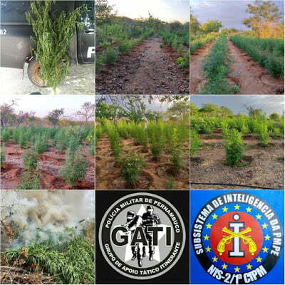 De acordo com as informações, no local, foi encontrado um grande plantio de Cannabis Sativa, onde se encontravam diversas pessoas realizando seu cultivo, que ao perceberem a aproximação policial, saíram em disparada embreando-se em meio a caatinga, não sendo possível capturá-los.