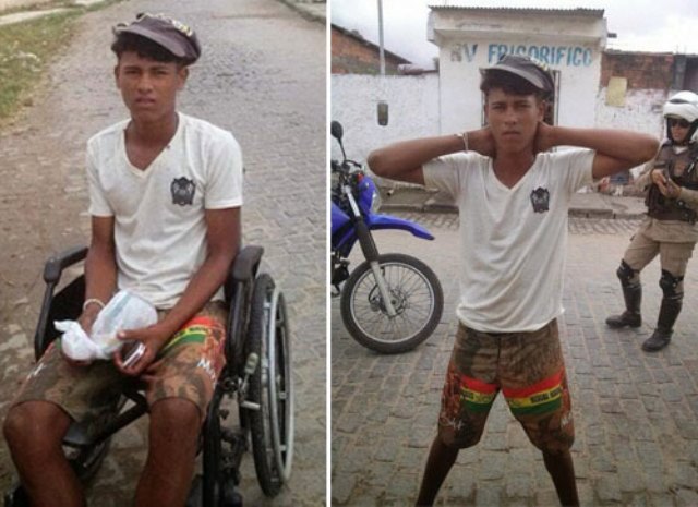A Polícia Militar da cidade de Feira de Santana flagrou nesta segunda-feira (07) um jovem que vendia drogas sentado em uma cadeira de rodas.
