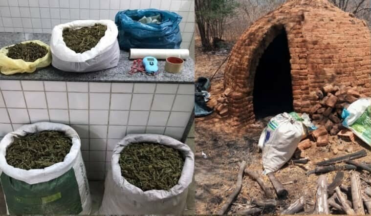 Durante a busca no intuito de localizar o fugitivo, foram encontrados vários sacos de nylon dentro de uma carvoaria, contendo um total de 17.950kg (dezessete quilos e novecentos e cinquenta gramas) de maconha pronta para o consumo.