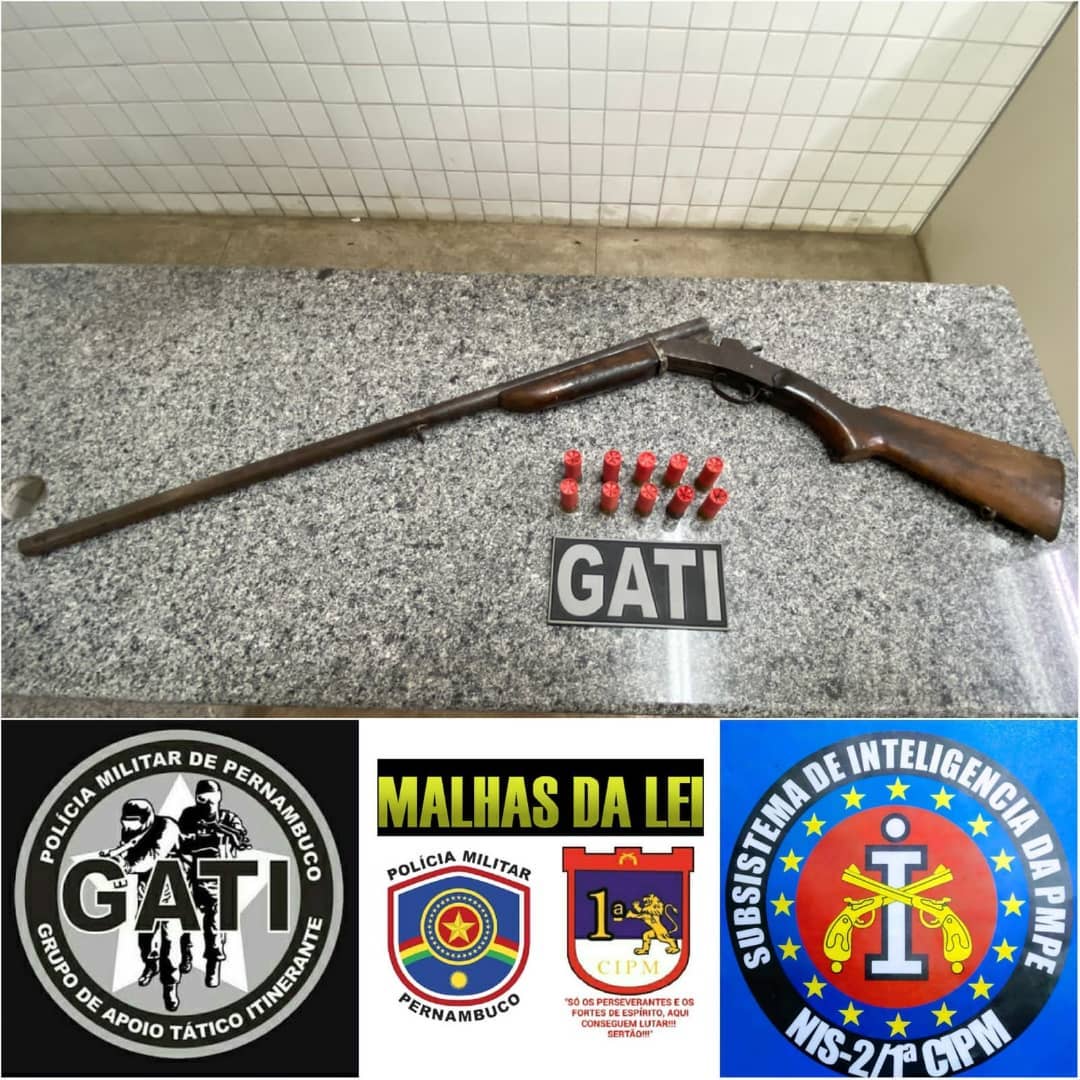 Nesta quinta-feira (11), a Polícia realizou apreensão de arma de fogo e munições na cidade de Floresta, Sertão Pernambucano. A ação foi deflagrada na PE-360, Zona Rural do Município.