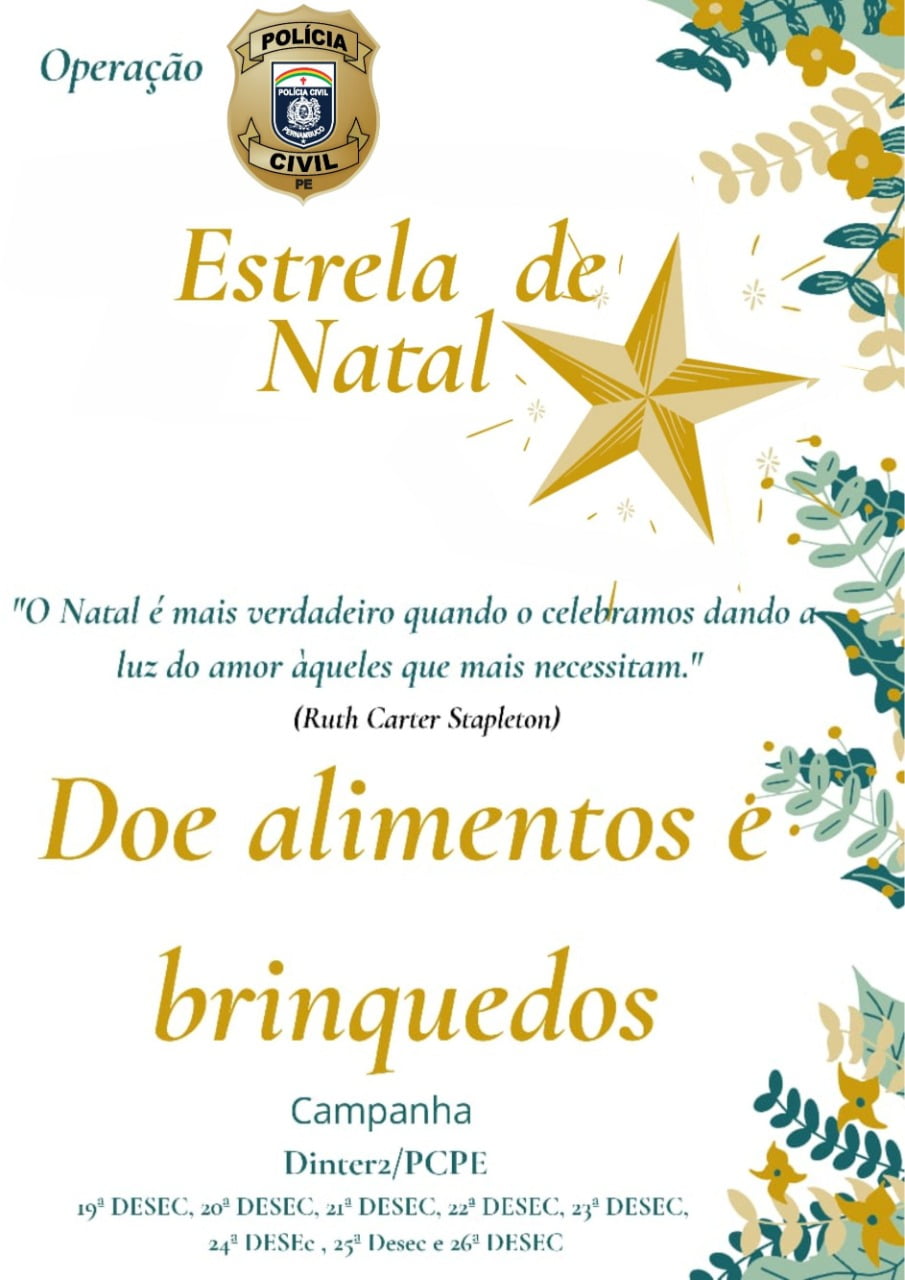 A Polícia Civil de Pernambuco, através da Diretoria Integrada do Interior 2, e suas operativas no Sertão de Pernambuco, iniciou desde a última terça-feira (01), uma ação solidária, a Operação Estrela de Natal. Operação que tem o objetivo de arrecadar alimentos e brinquedos.