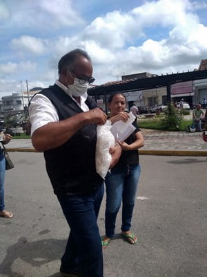 Foram distribuídas mais de 500 máscaras, na tentativa de minimizar os impactos que podem ser causados por aglomerações, pois o vírus circula, quando circulamos.